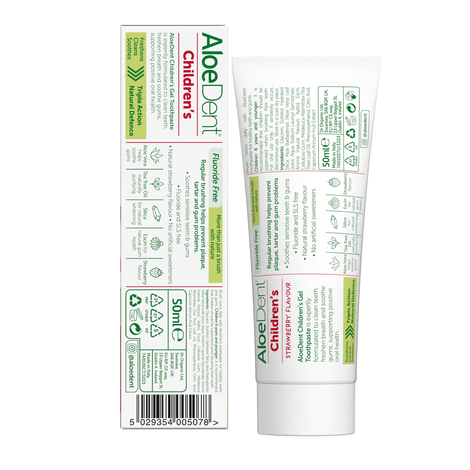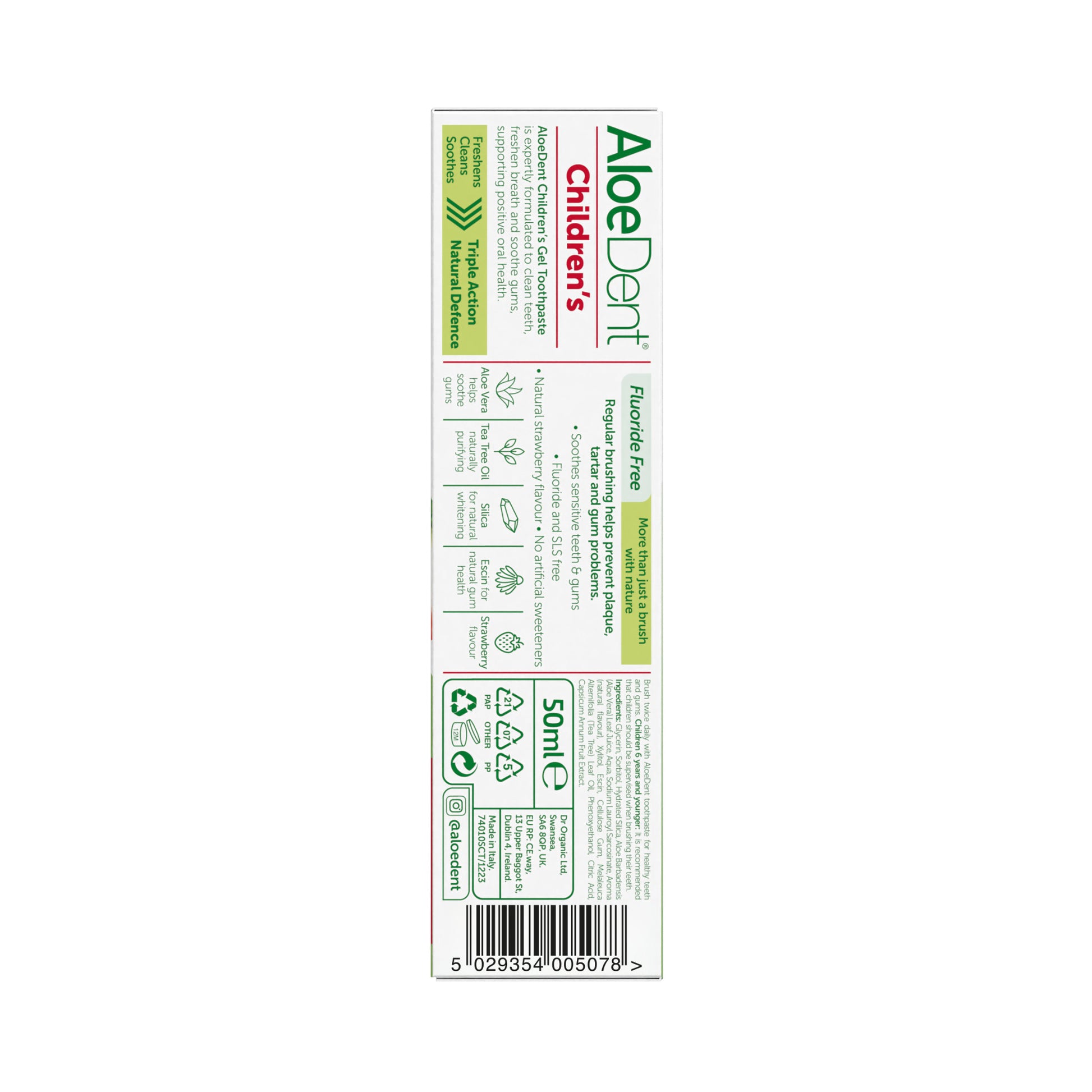Aloe dent Aloe Vera Fluoride Free Childrens Child Strawberry Toothpaste 50ml X 5