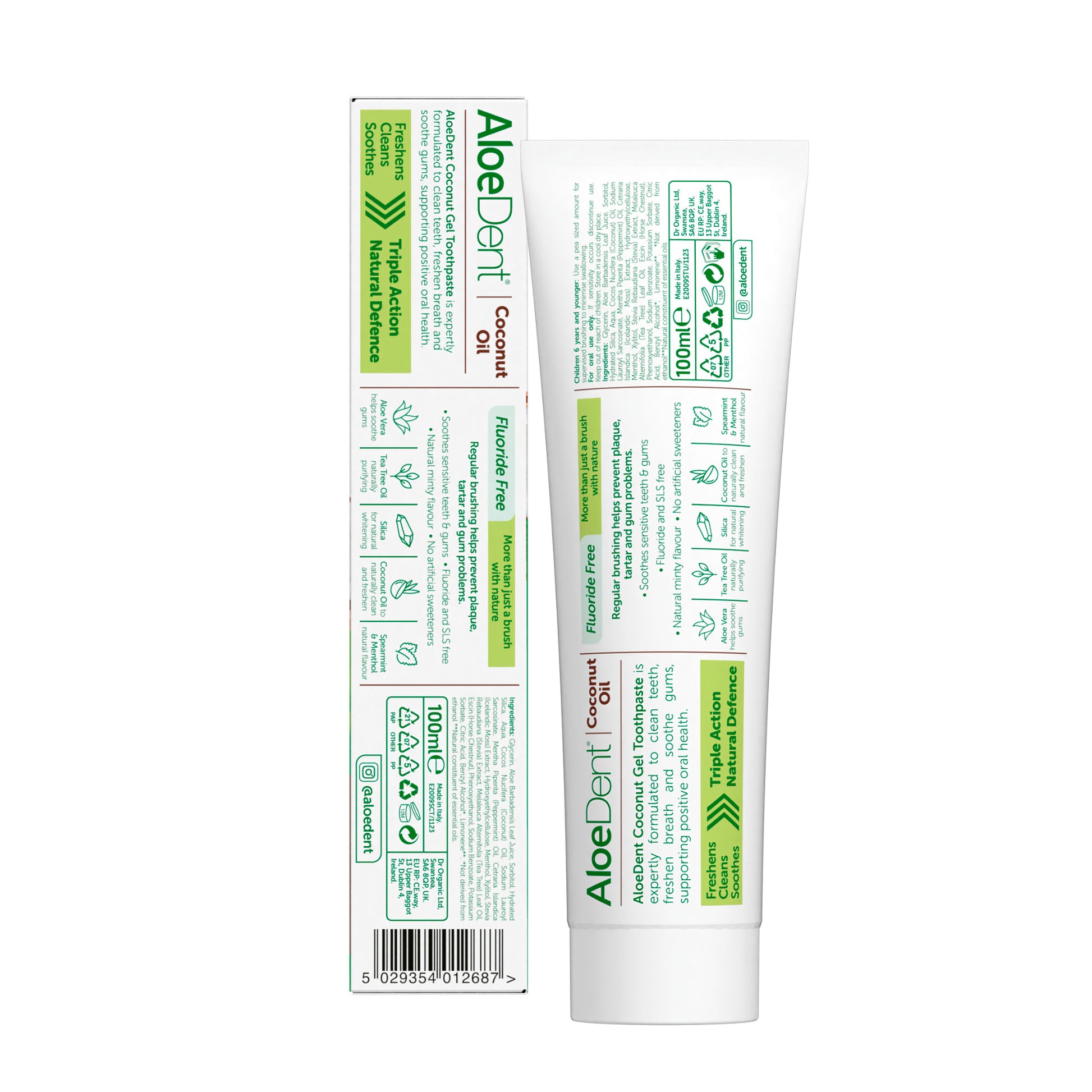 AloeDent Aloe vera Triple Action Coconut Fluoride Free Gel Toothpaste 100ml X 10