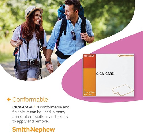 Cica-Care is a self-adhesive gel sheet that is medically proven to be up to 90% effective in the improvement of hypertrophic and keloid scars. Designed to soften, flatten, and fade red, dark or raised scars that have resulted from surgery, accidents, cuts and burns. Suitable for any part of the body including the face, the gel sheets can be used on closed wounds to prevent scar formation. The scars are not to be used on open or infected wounds, scabs, or stitches however.