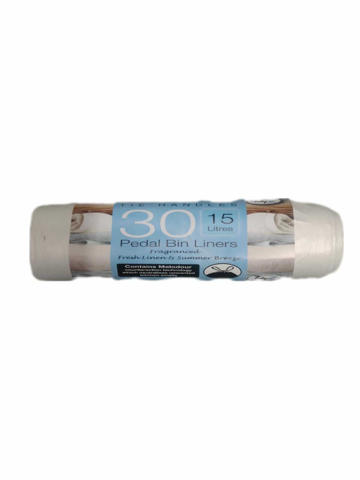 30 Pedal Bin Liners Tie Handles Standard Fresh Linen & Summer Breeze Bags 15L