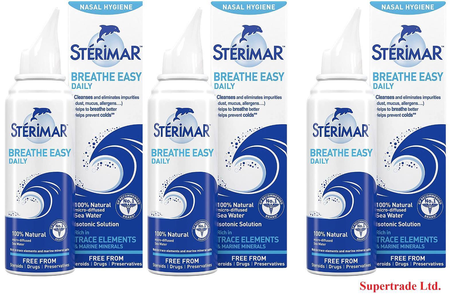 FREE FROM steroids, drugs and preservatives, this product has no side effects. This treatment is suitable for everyone from 3 years and up, including pregnant women & breastfeeding mothers. Can be used after nose surgery or injury. This product isn't a medicine but is a medical device. The spray technology combines a sterile valve-pocket system that contains Nitrogen as inert propellant gas in the pressurised device. The propellant gas does not come in contact with the solution. The specific tip allows a gentle microdiffusion for safe administration of the solution in the nasal cavity and is easy to use at any angle.Use daily to help improve breathing and enhance the quality of your sleep. Sterimar Breathe Easy Daily can be used on its own or with other nasal medication based on the advice of a doctor. Release the spray by briefly pressing the nozzle. Keeping the head straight, insert the nozzle into the nostril. Spray once or twice into each nostril. Let any excess solution flow out and then blow your nose. Clean the nozzle with soapy water, rinse and dry. The pack contains 1 can (dispensing approximately 300 sprays).