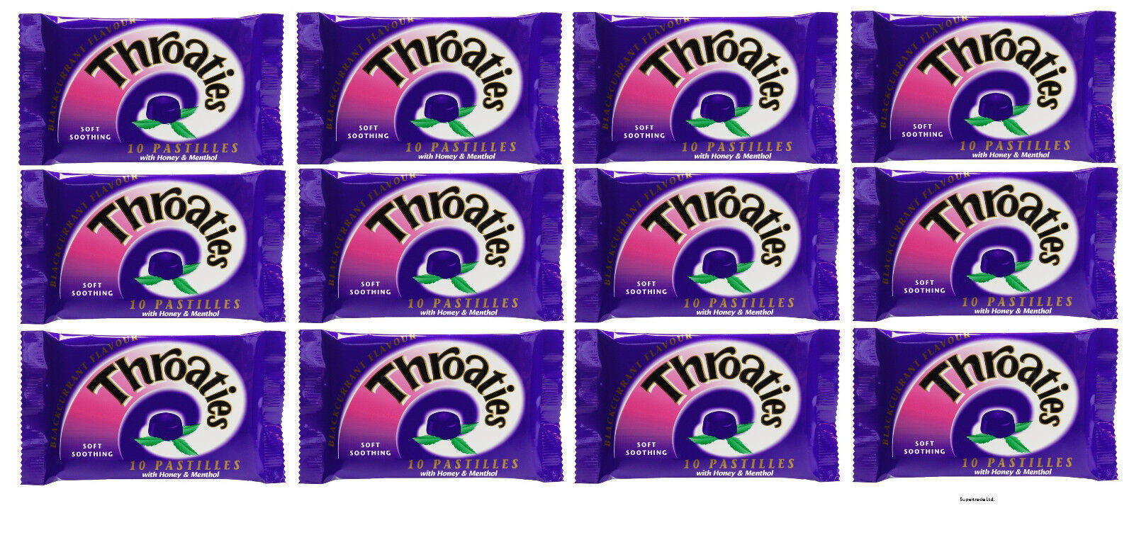 Throaties Blackcurrant Pastilles With Honey & Menthol For Throaty Soothe X 12