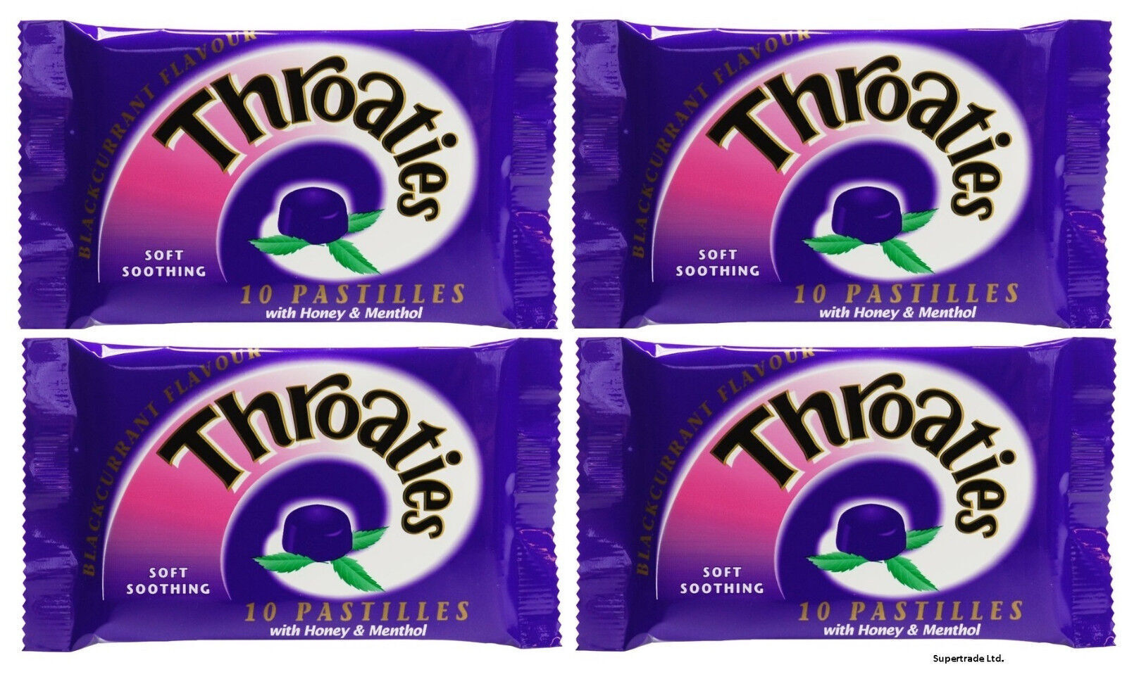 Throaties Blackcurrant Pastilles With Honey & Menthol For Throaty Soothe X 4