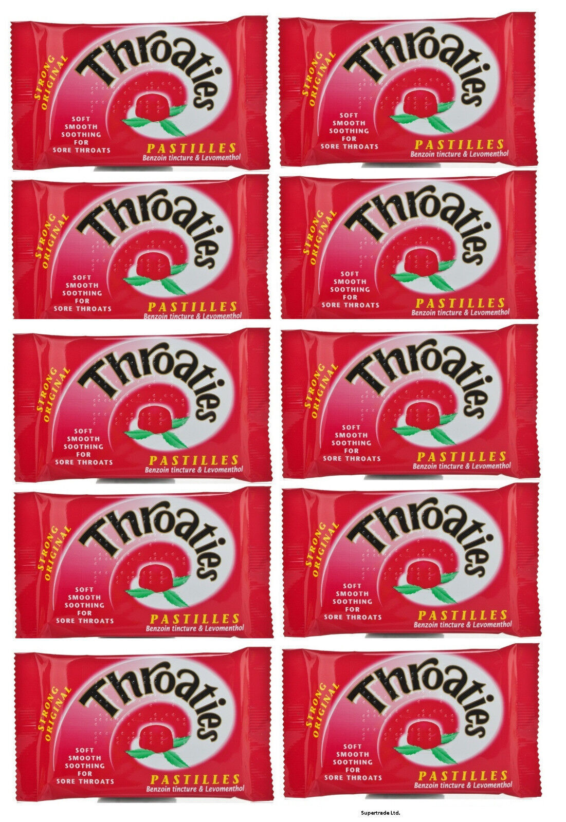 Throaties Strong Original Pastilles With Honey & Menthol To Ease Sore Throat X10