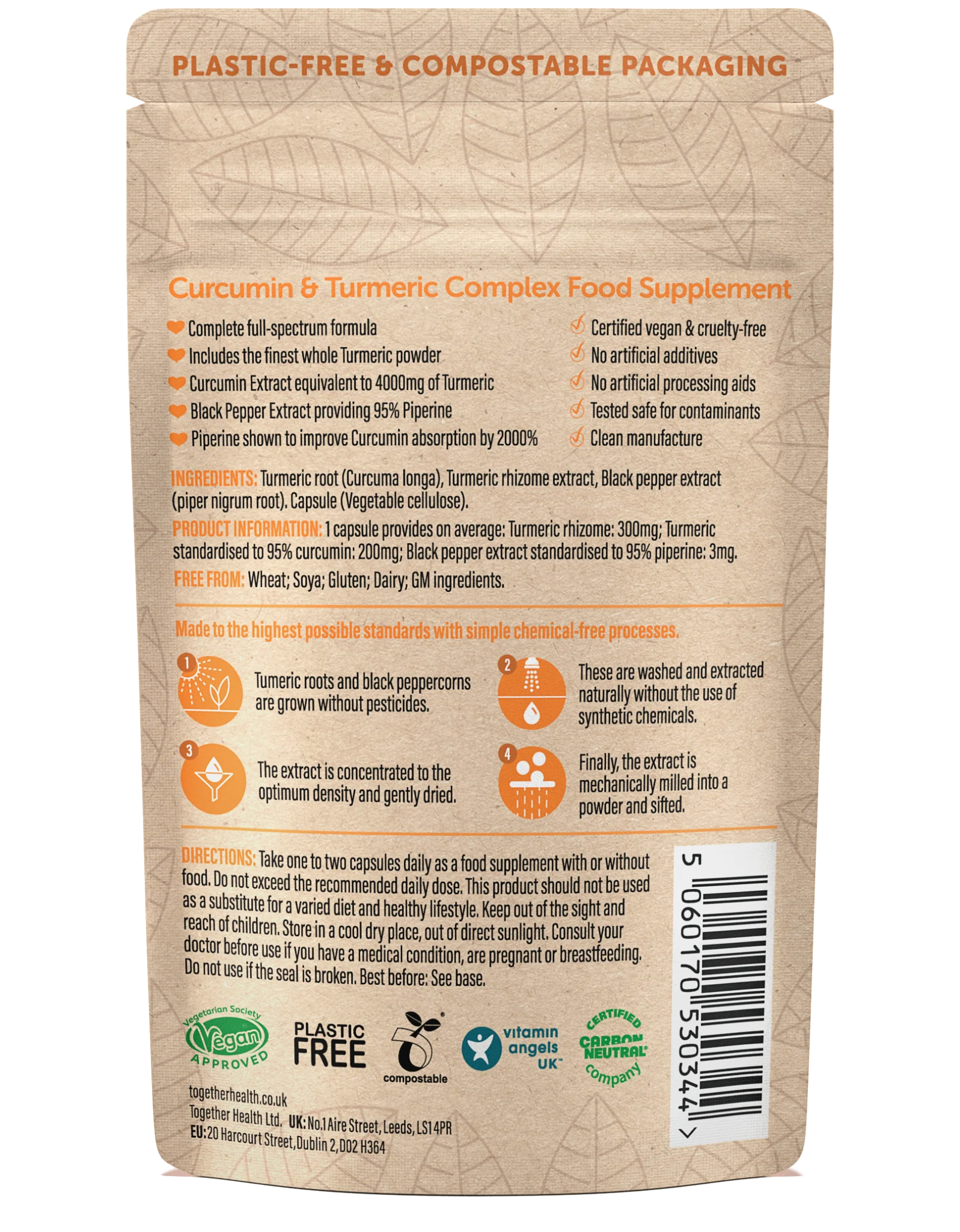 Our Curcumin & Turmeric Complex has been formulated to maximise all the benefits of turmeric, combining pure turmeric with a 95% extract of curcumin. The result? A complete, full-spectrum, antioxidant formula with all the vital compounds found in the whole turmeric, fused with a perfectly concentrated amount of curcumin.