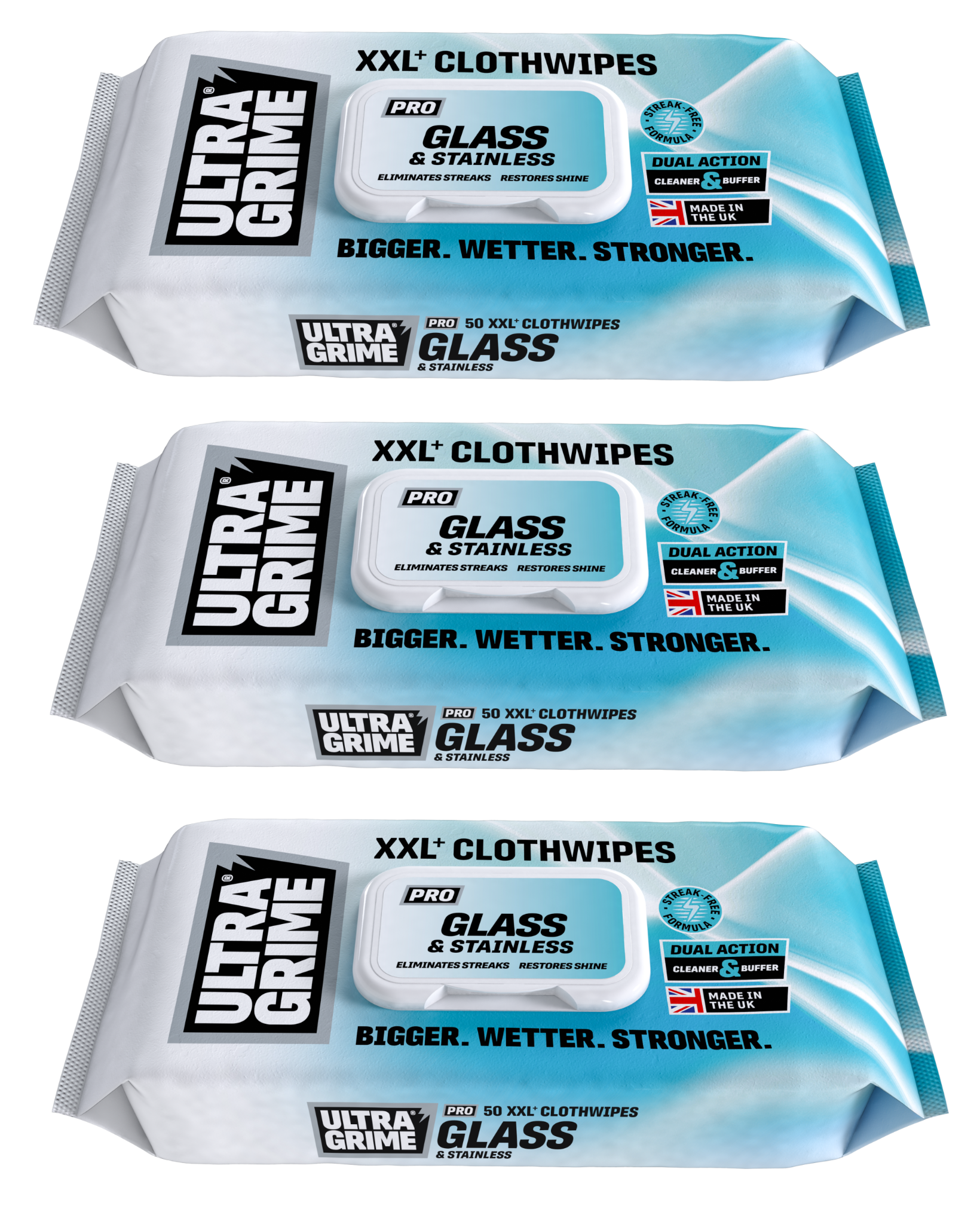 UltraGrime PRO Glass & Stainless Shiny Surface Strong Cleaning Cloth 50 Wipes X3